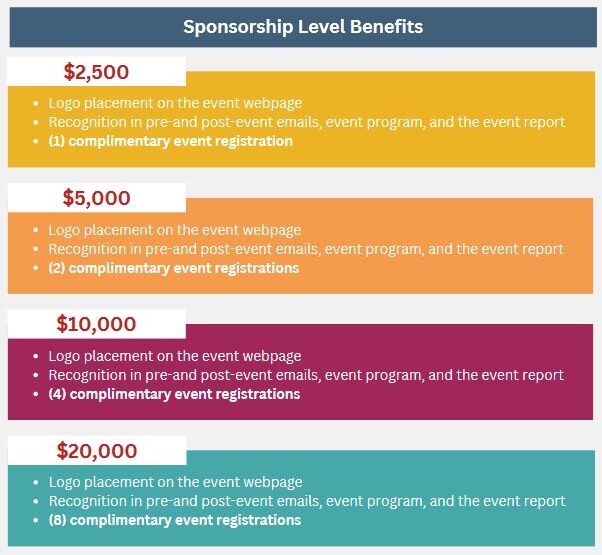 Sponsors may pay for their sponsorship selection via a credit card online, by mailing a check, or through an ACH/wire transfer.