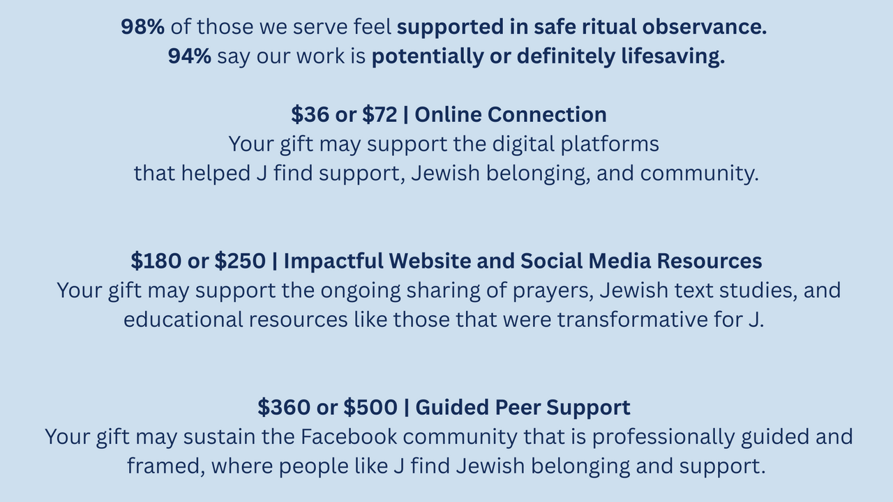 No one should have to choose between safe ritual observance and Jewish belonging. Your support makes that possible.