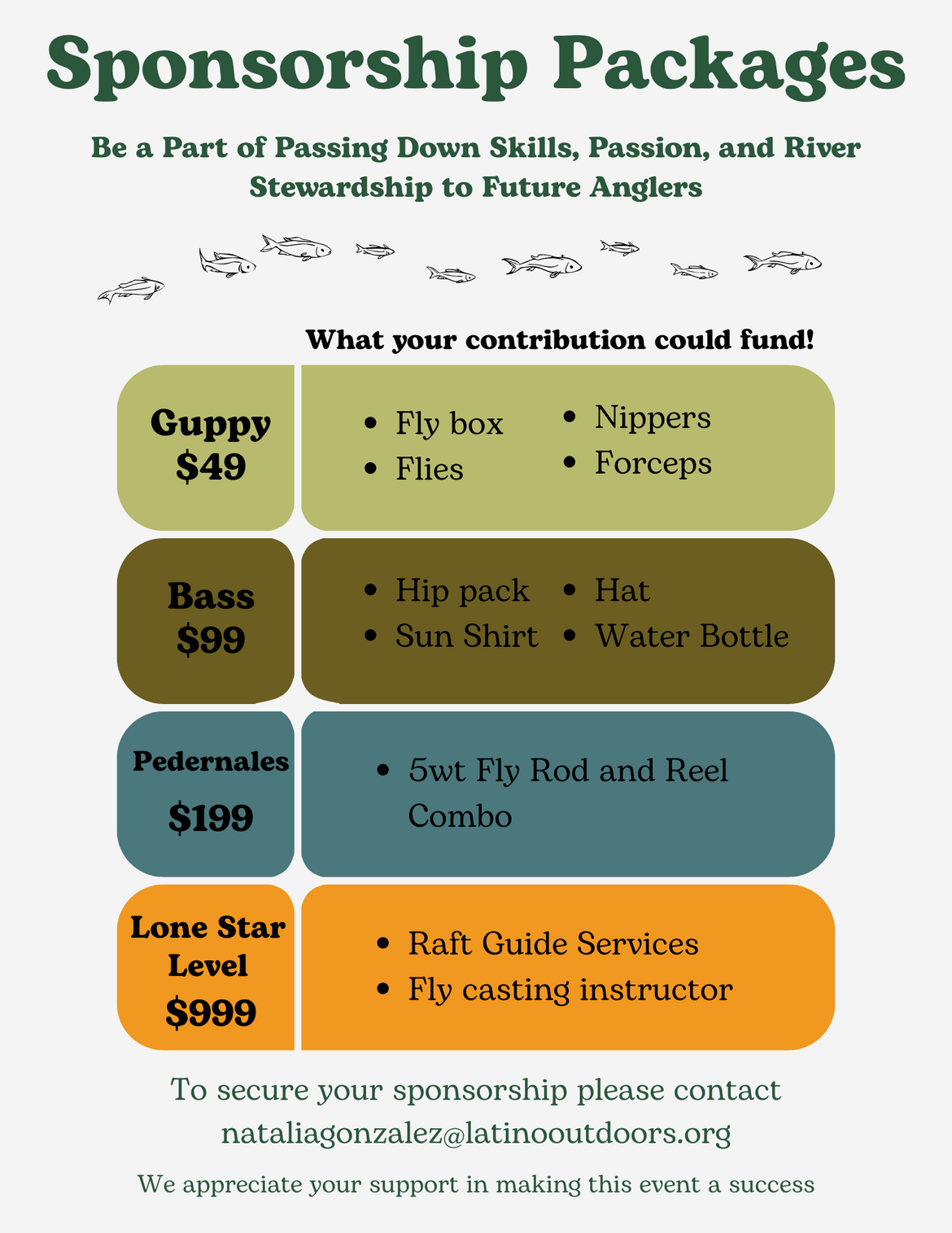 From March 20 - 22 LO Austin will host 20 BIPOC women for an all expenses paid weekend of learning how to Fly Fish on the Pedernales River.  This weekend campout will empower women to learn fly fishing in a supportive, mentor-led environment. They will build confidence on the water, community with peers, and become lifelong stewardship of Texas rivers. Through small-group instruction, hands-on practice, and guided time on the Pedernales River, participants gain the skills and the spark to keep fishing, volunteering, and caring for our waterways long after the weekend ends. Your support will help purchases rod kits and fly fishing gear needed for our beginner anglers.